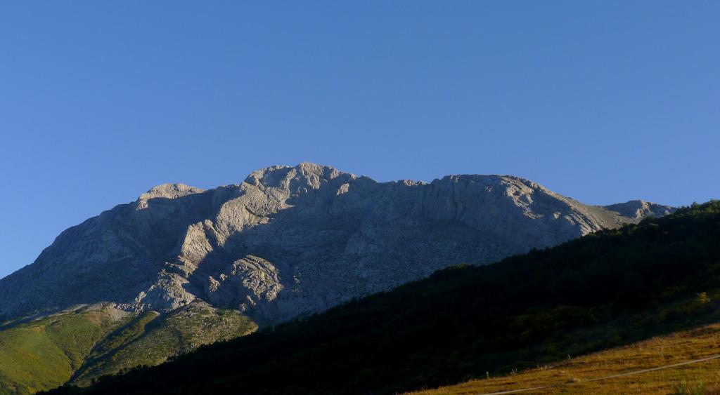 Regreso al collado (2404m 4h10′) y comienzo el descenso, esta vez sin abandonar nunca la zona pegada a la pared este (ahora a mi izquierda) por donde veo que la senda continúa bien jalonada de hitos hasta desembocar en la pista, un poco más abajo de donde la dejé a la subida (conexión con la pista 1670m 5h20’). A la sombra de los robles me detengo a comer y media hora más de caminar para llegar otra vez al coche, con ganas de volver para subir el resto de los grandes de esta zona. Aparcamiento 1365m 6h15′.