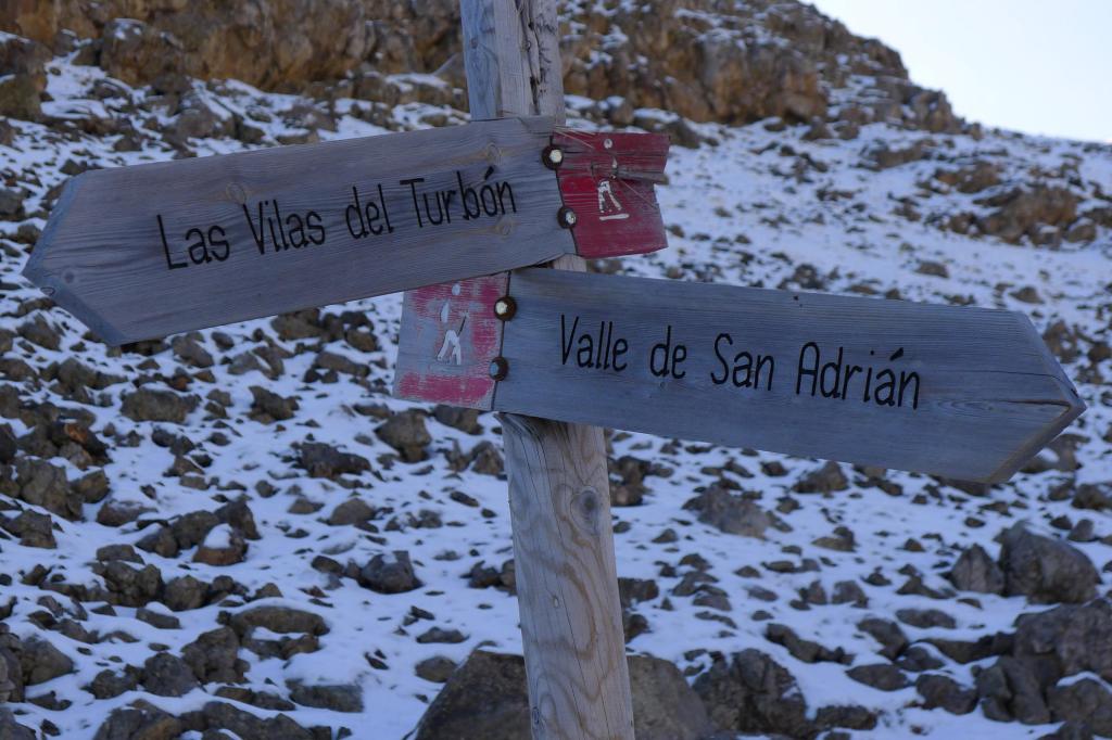 Hay que hacer un ligero descenso hacia el fondo de la Coma de San Adrián y cruzar el arroyo de San Adrián a su orilla izquierda. Se ve una larga travesía para alcanzar el extremo S de este valle encerrado por verticales paredes a derecha e izquierda. Al otro lado del arroyo, a unos 1980m, se intuyen los restos de la ermita de San Adrián, curioso emplazamiento para una ermita en un lugar tan aislado y sombrío, donde seguramente no entre el sol durante meses enteros.