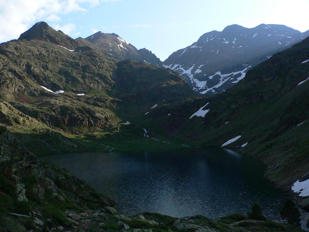 Seguimos ascendiendo todo el valle de Canalbona (N) por la orilla izquierda del barranco. Pasamos junto a un pequeño laguito (2475m) y después por la otra orilla (orilla occidental) el Estany de Canalbona (2565m)