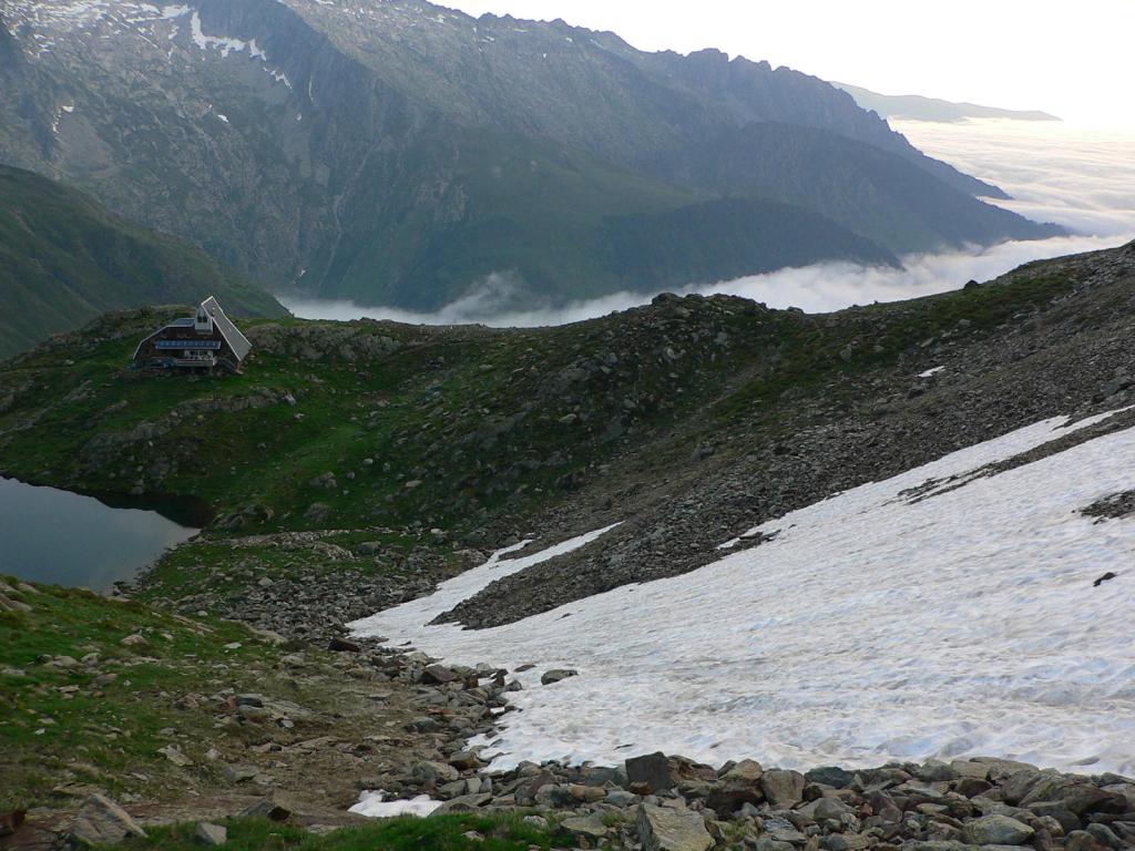 Por fin retomamos la ruta que desciende la valleta de Bars para llegar tranquilamente al refugio de Pinet, emplazado junto al laguito de Pinet y con una vista extraordinaria (cuando se despeja la niebla) (Refugio de Pinet 2246m)