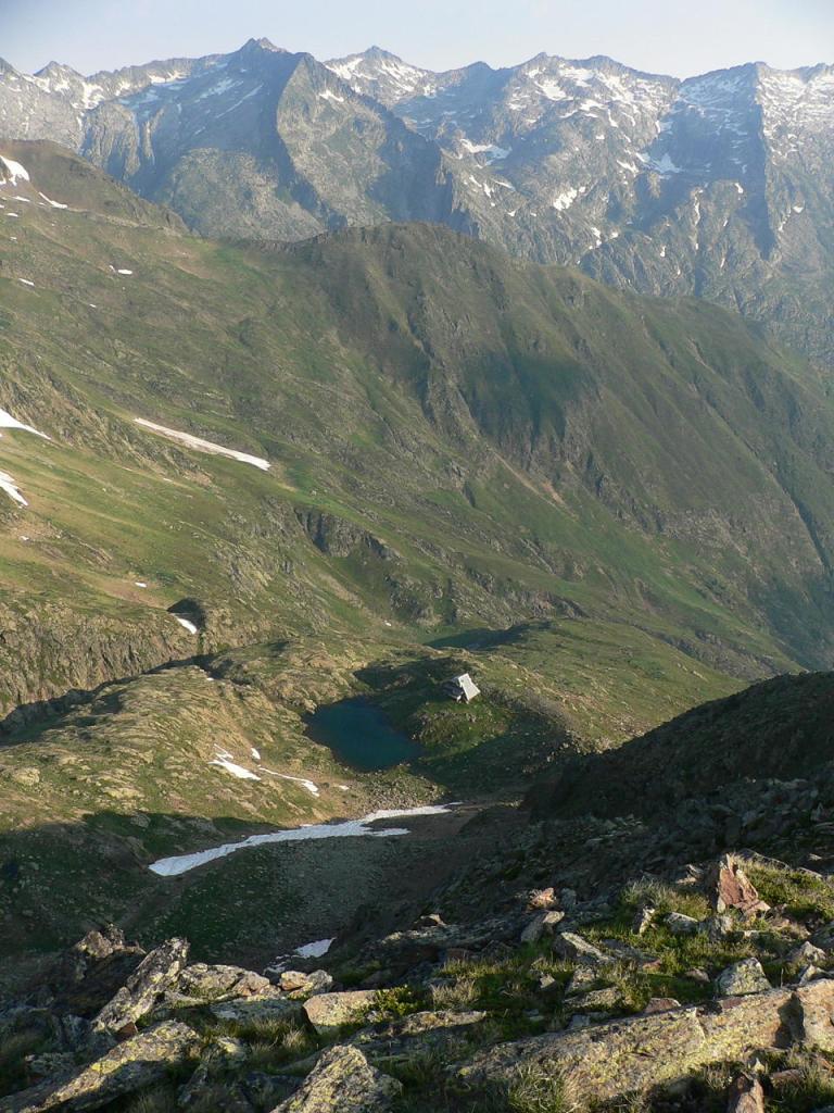 El descenso lo hacemos desde el pico Romaset por un vallecito que baja directo al Estany del Port Vell, en vez de volver por la cresta. Llegamos así a la orilla N del lago y continuamos por el desagüe del barranco del Port Vell hasta enlazar con la ruta de subida a 2330m.