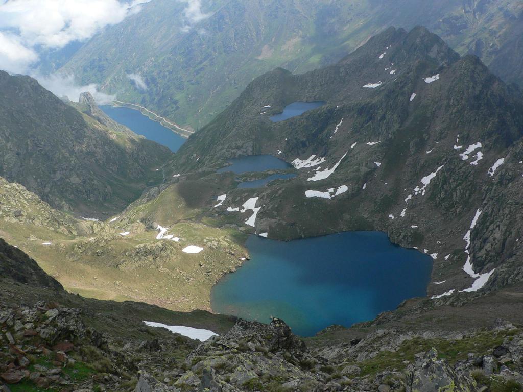 En la frotera entre el Pallars Sobirá y el Ariège, al NW de Andorra, se alza el macizo más elevado de Cataluña y los tresmiles más orientales de la cordillera pirenaica. Un conjunto de picos graníticos, con escarpadas crestas, innumerables lagos y neveros permanentes, cuya exploración es imprescindible para todo pirineista. En 6 días Josan Zugasti y yo ascendemos el pico Areste, la Pica d’Estats, la punta W de la Pointe du Montcalm, la Punta Romaset y el pic Oriental de Canalbona.
