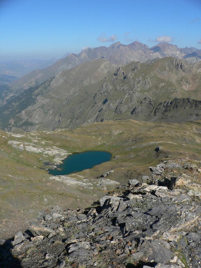 Se toma la cresta en dirección S y, evitando un resalte por la izquierda, se llega al pico N (Pico Norte de Mallarruego 2682m). Tras descender al collado (2665m) se asciende rápidamente al pico S sin ninguna dificultad (pico S de Mallarruego 2684m 3h12′). Desde la cima, después de disfrutar de una ruta tremendamente solitaria, tenemos una magnífica vista de Tendeñera y Vignemale