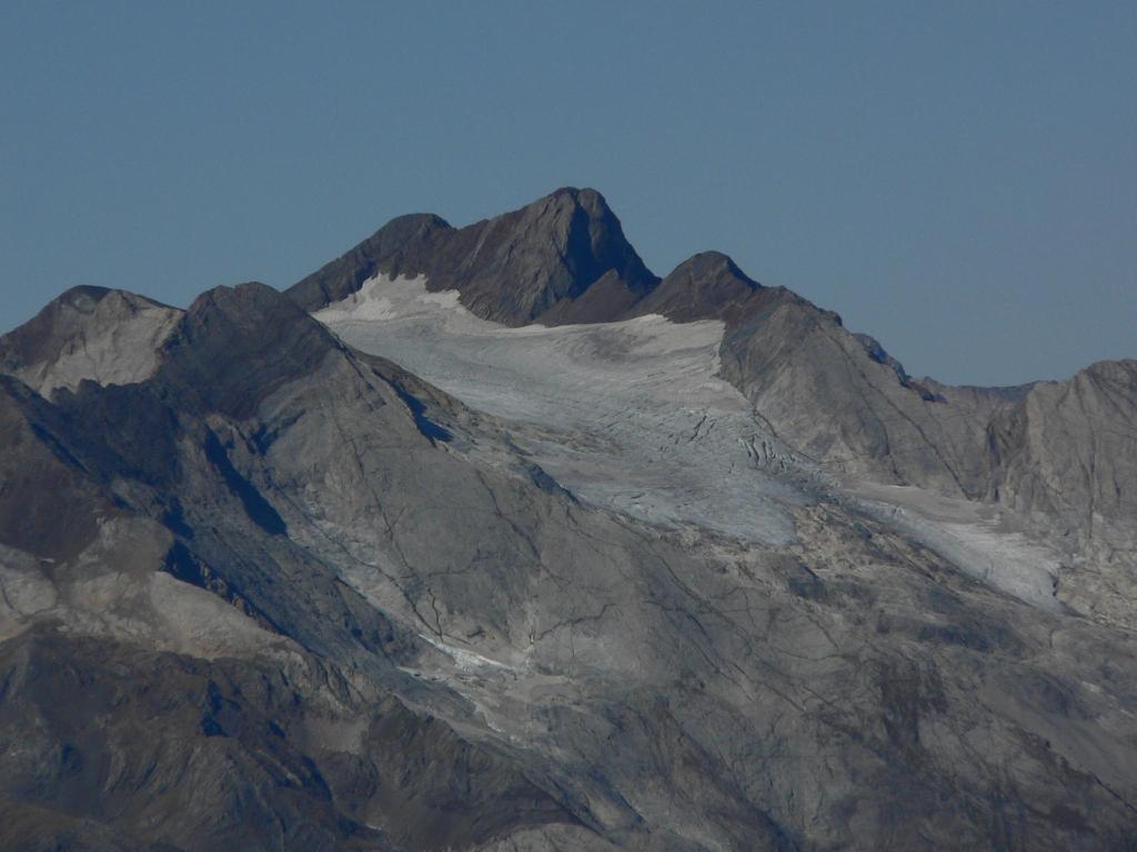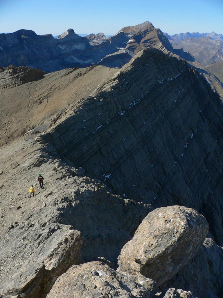 Una vez en la cresta vamos ascendiendo más bien por la pared S (vertiente española), con alguna trepada fácil en la parte final, hasta alcanzar la cumbre (Gran Astazu 3071m 3h50′). Siempre se van adivinando las zonas más pisadas que marcan el mejor recorrido