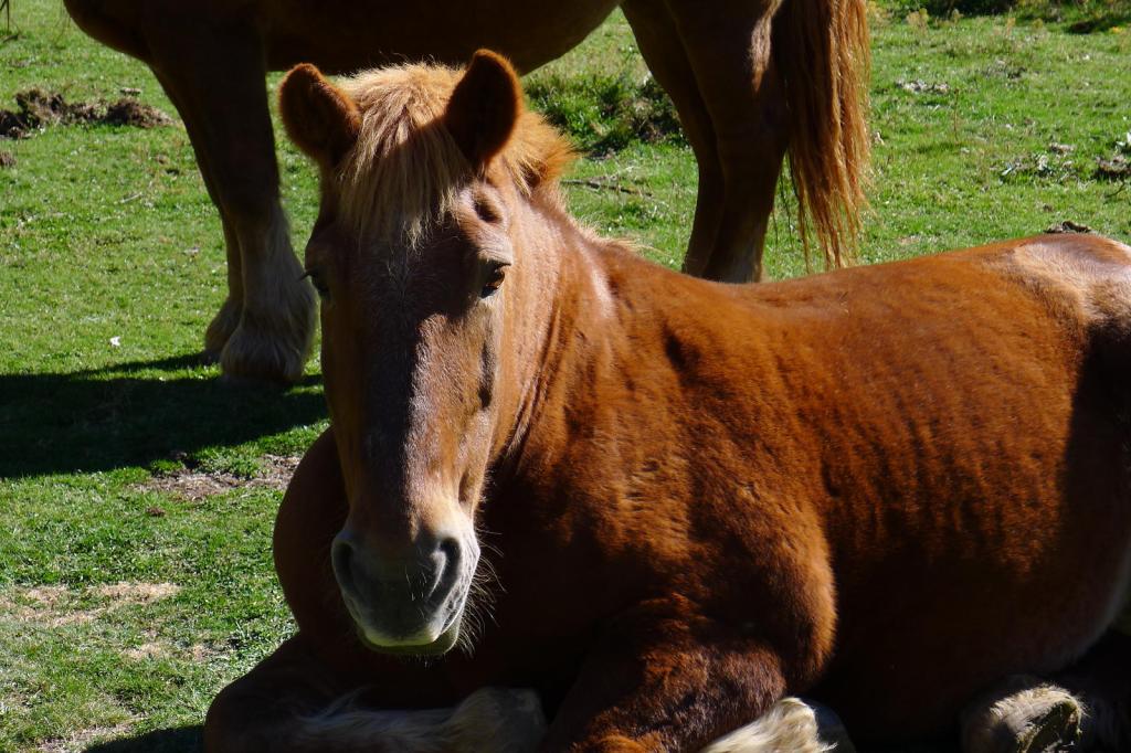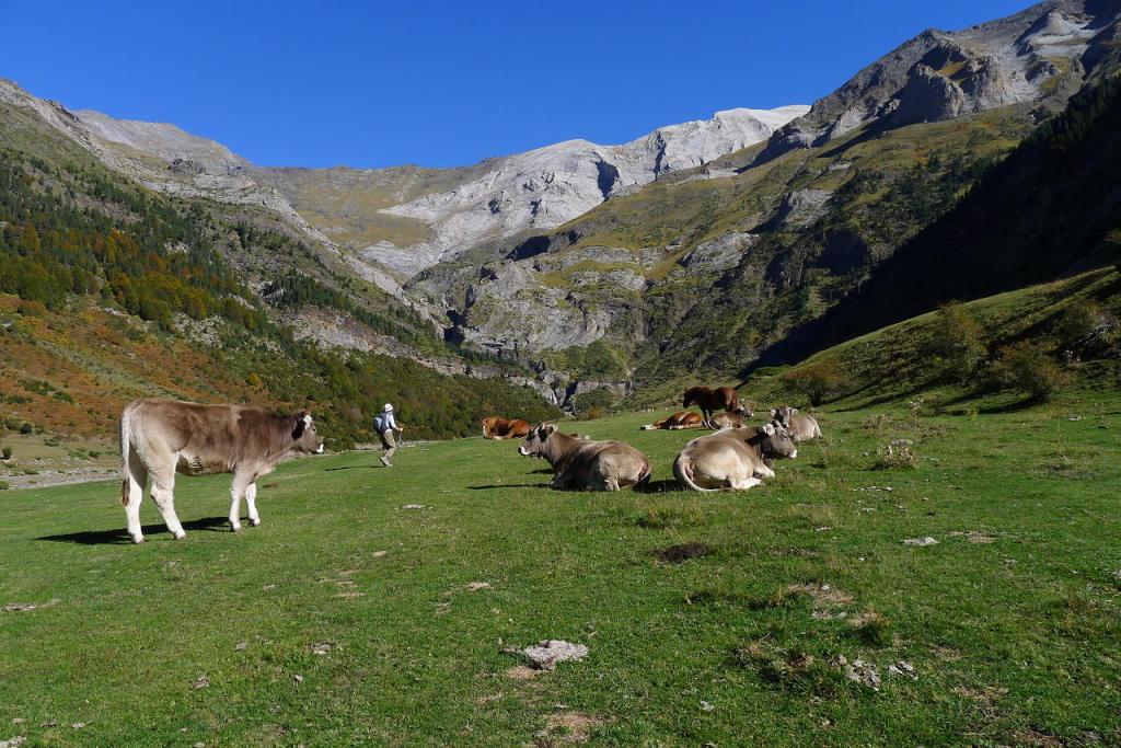 Las praderas se extienden a lo largo del vallecito del río la Larri, ascendiendo suavemente hacia el NNE, por la orilla izquierda del río. Vacas y caballos pastan tranquilamente Llegamos así al Salto de la Larri, donde el valle se estrecha en una profunda garganta (Salto de la Larri 1625m) y, tras un descanso, damos media vuelta.