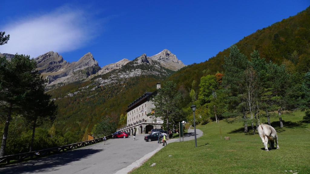 Se puede aparcar en el Parador de Pineta, al final de la carretera que asciende desde Bielsa a lo largo del valle glaciar de Pineta (Parador de Pineta 1290m). Enfrente tenemos el Balcón de Pineta y los picos Pineta y Punta Garién; a la izquierda el collado de Añisclo y los tresmiles del macizo de Monte Perdido. La excursión, sin embargo, se desarrolla por las laderas más amables de nuestra derecha.