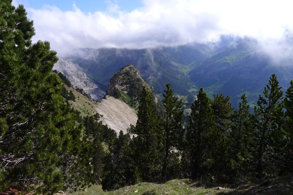 Dejando el coche en Canfranc Estación (1195m), se atraviesa una zona verde junto a la iglesia y se alcanza una pista que se dirige hacia las piscinas y zona deportiva, que dejaremos a nuestra derecha haciendo un giro a la izquierda. Nos metemos así por una senda muy claramente marcada (es el PR14 con señales amarilla y blanca) por un denso pinar, cogiendo altura rápidamente mediante interminables zigzags.