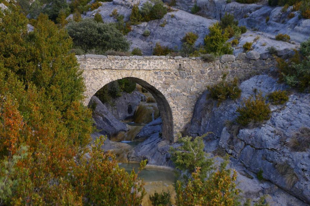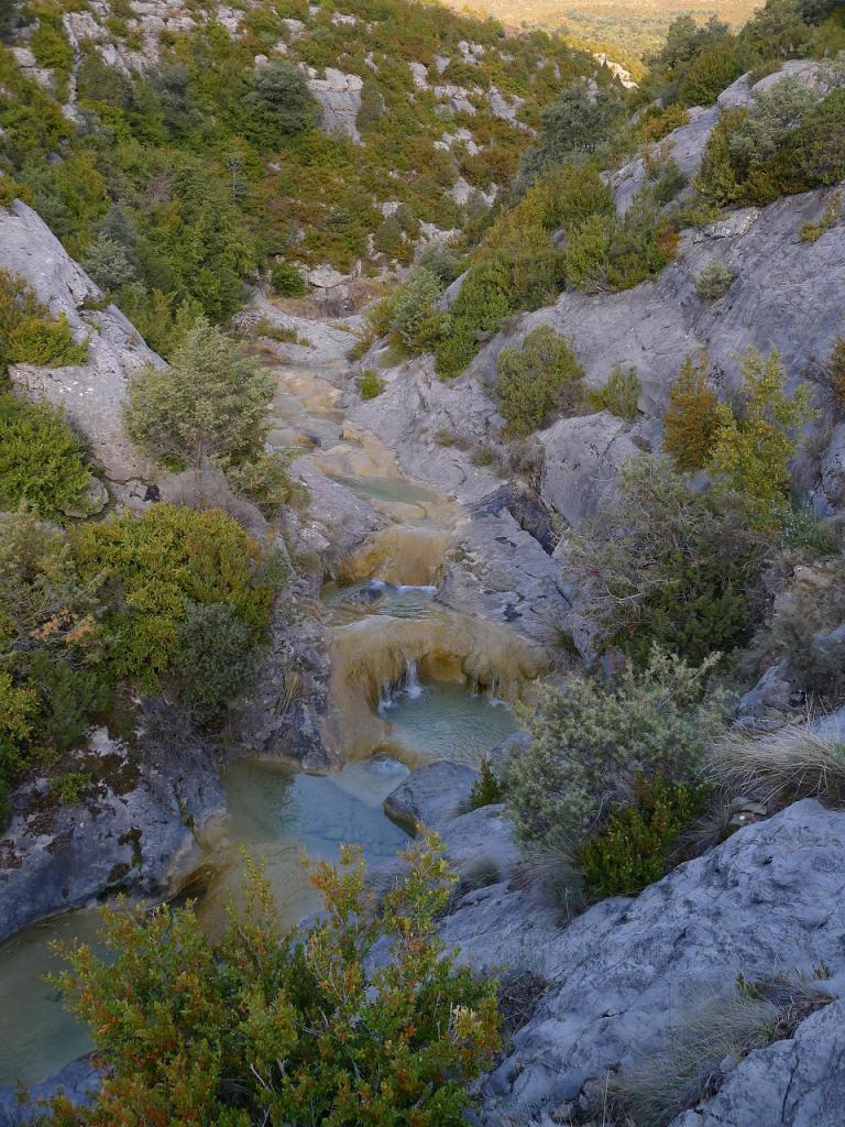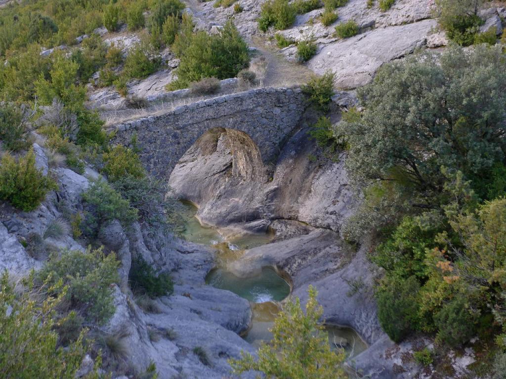 Se cruza el barranco por un precioso puente (1000m), y empezamos a ascender por la ladera de su orilla izquierda. El barranco, debajo de nosotros, desciende en una sucesión de pequeños saltos y pozas.