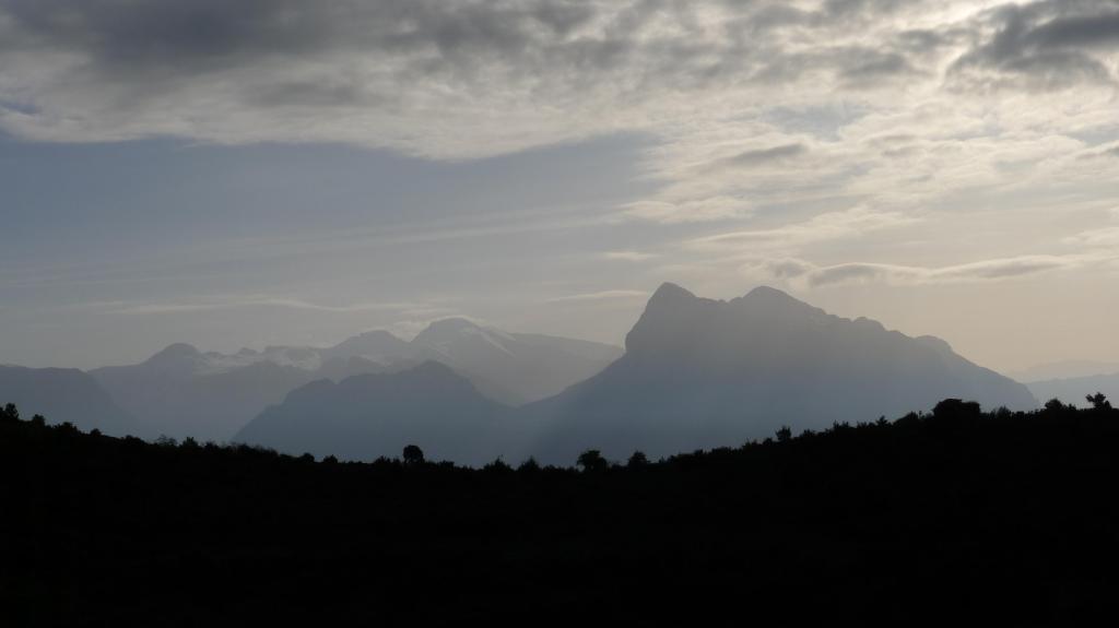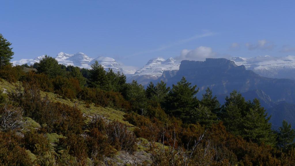 En esa cota 1190m nos desviamos al NW para alcanzar una pista (1418m) que nos lleva a la divisoria en el collado del Pozo (1534m) con magníficas vistas de la Peña Montañesa y del macizo de Monte Perdido