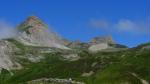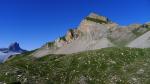 La primera parte se hace por la cara NW, entre hierba y piedra, con algunas chimeneas herbosas, hasta pasar al lado contrario y atravesar en diagonal por la faja herbosa justo bajo la pared somital del Cézy y colocarse bajo su cima al S. Desde aquí hay una pequeña escalada. Dejo los bastones (2180m 2h57′) y trepo a la cumbre (Cézy 2209m 3h00′) magnífico mirador de las cumbres en torno al lago de Artouste, del macizo de Ger y el siempre presente Midi d’Ossau.