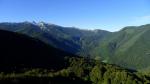 Como la zona de cresta es boscosa, vamos siguiendo sendas a media ladera (E), pero siempre buscando no alejarnos demasiado de la arista a nuestra izquierda, hasta que finalmente alcanzamos dicha arista en forma de lomo herboso, que seguimos (ESE) hasta la cima del Layens (1625m 1h40′), compuesto por dos mogotes, el primero con un gran hito y el segundo con un poste de estación meteorológica. Las vistas abarcan desde las llanuras de Oloron y Pau hasta los macizos de Mailh de Massibé, Ger, Sesques o Escarpu, Collarada, Aspe, Bisaurín, Anie y Orhi.