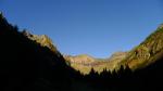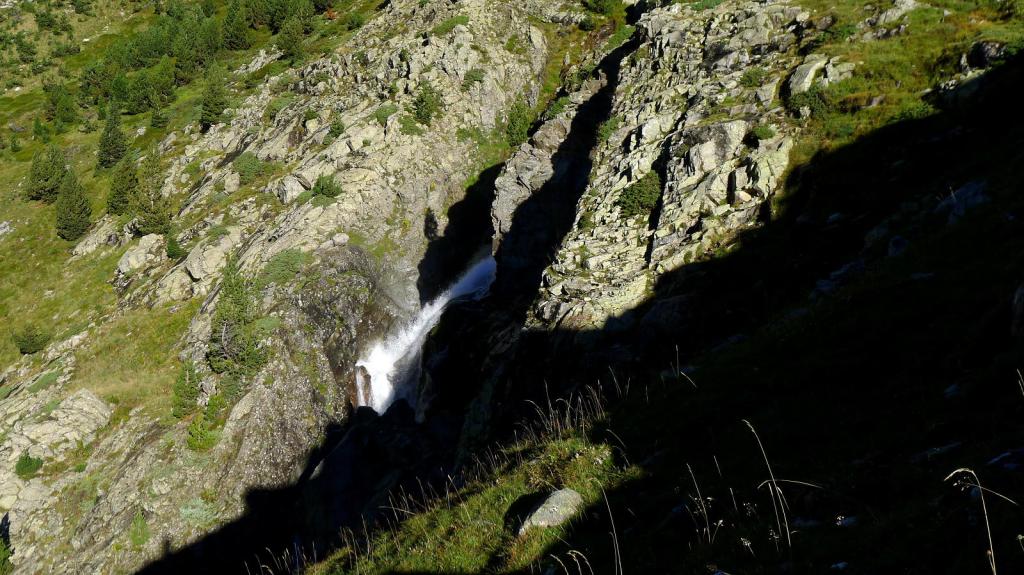 Claramente el circo está amurallado por el N y el W, así que la ruta se dirige hacia el N superando esta primera barrera por la derecha, para alcanzar el valle colgado que hay por encima con segundo circo. Después de la cascada supero una faja herbosa hacia la derecha (NNE) y alcanzo la senda principal.