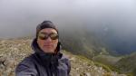 Sigo hacia el puerto de Barrosa, pero antes de llegar cambio claramente de dirección y voy hacia el E por prados y en sentido ascendente. Empiezo a perder visibilidad con la niebla. Al llegar a una pedrera pizarrosa subo por su derecha y encuentro una senda muy clara que sigue ascendiendo a media ladera, ESE, entre prados y cómodas pedreras pizarrosas. Finalmente alcanzo la cresta en el collado entre la cota 2732 y el pico Barrosa, al que ya se llega enseguida (pico Barrosa 2762m. 3h10′). Paredones verticales caen hacia el N, hacia el circo de Pinarra, pero apenas puedo apreciar las vistas envuelto por la niebla. El descenso por el mismo camino.
