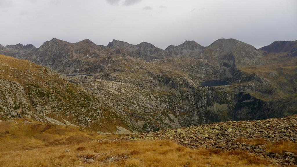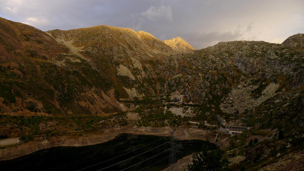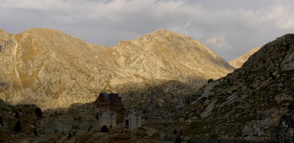 Pasando por encima de la presa se encuentra enseguida el bonito refugio de Estany Gento (2150m 1h25′), que ahora ya está cerrado, y la estación del teleférico que sube desde Sallente. Frente a nosotros tenemos la vista del col Font Sobirana por donde pasaremos al siguiente valle después de rodear todo el circo de Sallente.
