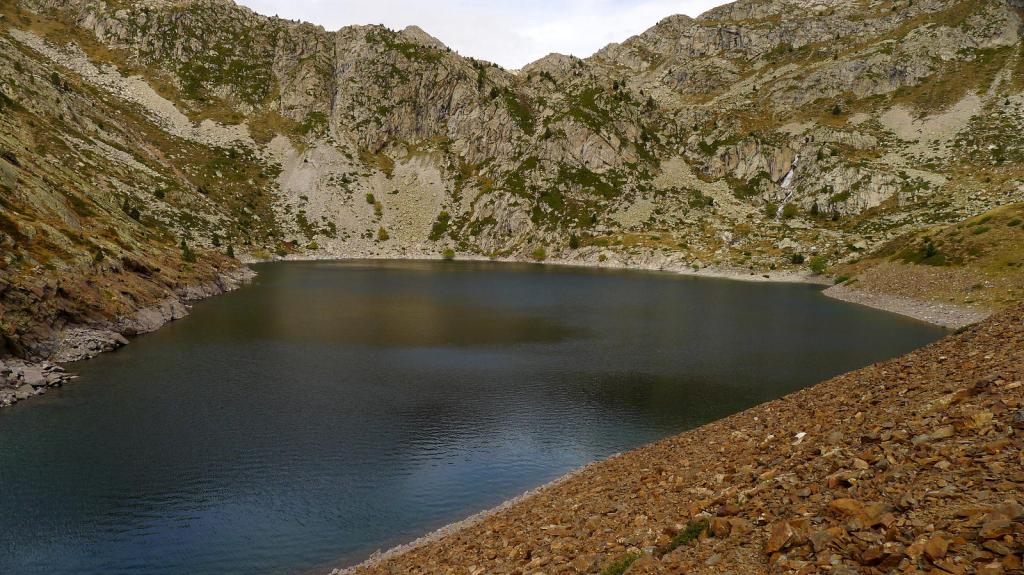 Enseguida nuestra senda pasa a ser el GR11-20 que, faldeando la ladera y en muchos tramos empedrada con losas de granito, sigue dirección W hasta la presa del Estany Fosser, donde buscamos una zona un poco abrigada del viento para almorzar (Estany Fosser 2224m 2h20′).