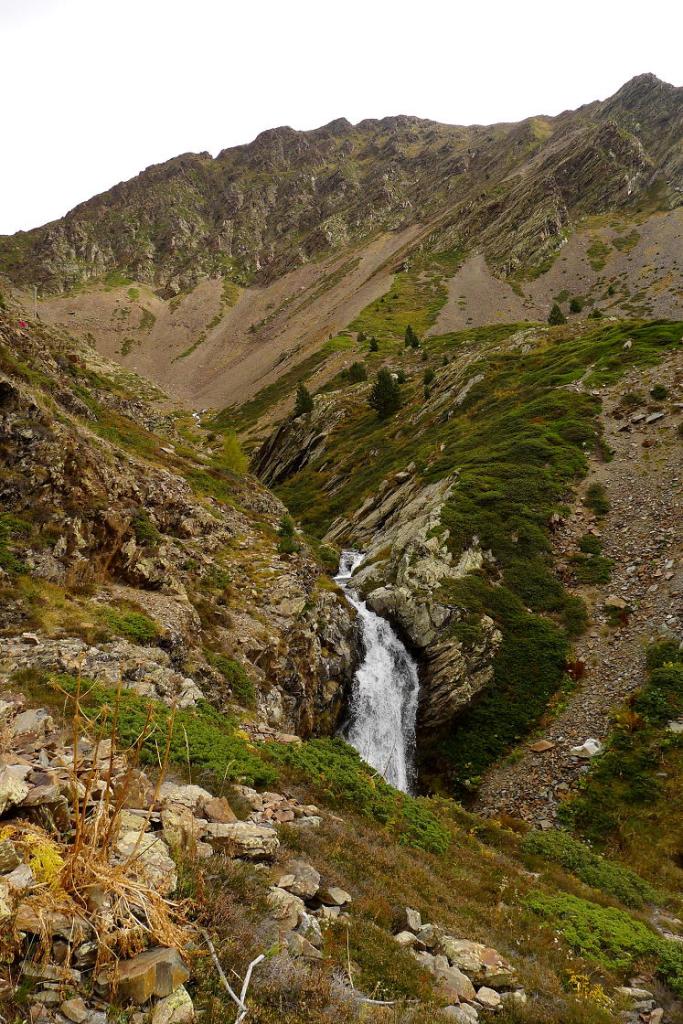 Cruzamos por un puente el barranco de Francí (1955m 4h20′) y dejamos el GR11 que se dirige al port de Rus para continuar por la senda (SE) que desciende por el valle (Cruce 1950m 4h25′). Una parada para hacer fotos en una preciosa cascada al cruzar el riu Riquerna a su orilla izquieda (cascada 1855m 4h35′), orilla que seguiremos por el largo valle que, en sus últimos metros, se introduce por un acogedor bosquecillo, entre los antiguos muretes trabajados por los habitantes de la zona, antes de entrar en el pueblo de Cabdella (1412m 5h40′)