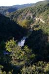 Un tramo de subida nos lleva hasta una bifurcación señalizada 570m 1h48′), seguimos a la izquierda y descendemos por una senda pedregosa hasta la orilla del río. Deberíamos cruzar por unas grandes piedras a la otra orilla, pero falta una piedra y, sin mojarnos los pies, no podemos llegar al otro lado, donde hay una pequeña área de picnic; almorzamos por tanto en esta orilla izquierda, junto a unas encantadoras badinas donde el agua se remansa tras salir de los estrechos rocosos del barranco de la Peonera (Fuente Tamara 485m 1h58′).