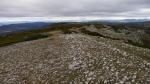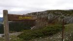Asciendo junto a una verja para el ganado hasta la cresta lomosa formada por lapiaz calizo, hasta el punto más alto, siguiendo hitos. Peña Vallegrull (1222m. 3h04′). El viento, el frío y el cielo oscuro no animan a quedarse mucho en la cima. Desciendo hasta el punto donde me desvíe del camino (1097m. 3h18′) y continúo (SE). En una curva a la derecha hay un cartel que nos indica que no pasemos entre el 1 de enero y el 15 de agosto para proteger las buitreras.