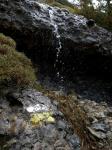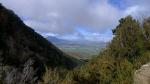 Al llegar a los carteles (1600m 2h27′) comienzo el descenso por el PR5, por la orilla izquierda del estrecho y frondoso barranco de la Garganta, una ruta bien señalizada que resulta muy atractiva, todavía con girones de niebla, con algún tramo cubierto de nieve y el ruidoso barranco siempre muy cerca; de hecho hay que cruzarlo en 4 ocasiones, las dos primeras fácilmente para seguir durante un corto tramo por la orilla derecha y volver a la izquierda. El tercer cruce (1455m 2h50′) es un poco más complicado, el camino se pega a la pared derecha, cubierta de chorros de agua; pienso que igual tendré que descalzarme para hacer el cuarto vadeo (1420m 2h58′), pero finalmente puedo cruzar aprovechando un arbolillo como apoyo en mitad del cauce, en un pequeño rincón con una cascada precioso.