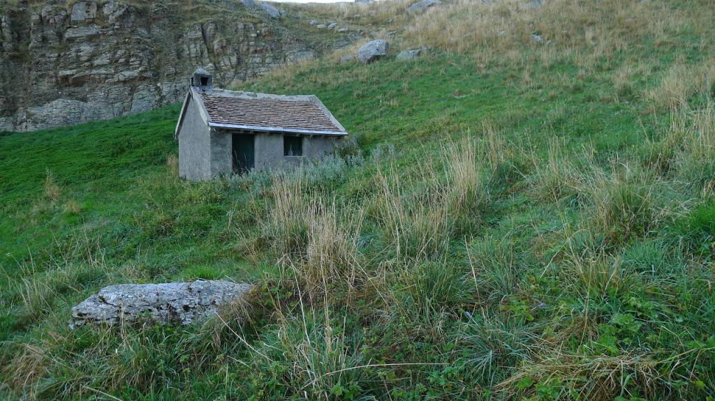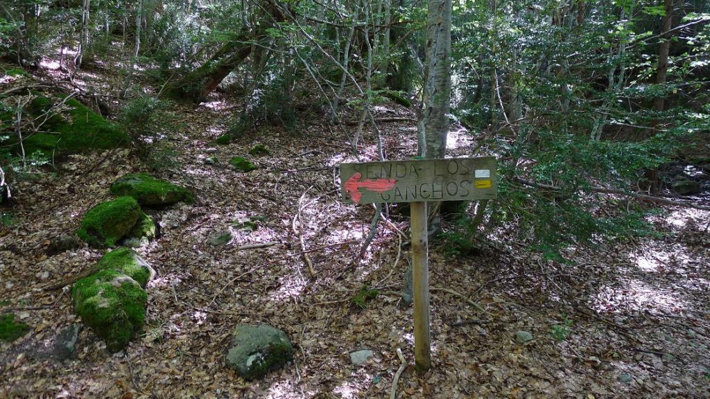 Aparcando frente al campamento San Juan de Dios (1070m), en la carrtera que sube de Echo a la Boca del Infierno y Selva de Oza, se cruza por el puente el Aragón Subordán a los prados del abandonado campamento. Una tenue senda nos lleva hacia el bosque siguiendo el cartel de «senda de los Ganchos». Justo antes de encontrar el siguiente cartel de madera hay que desviarse por un camino a la izquierda y seguirlo por el denso bosque, con fuertes pendientes que permiten ganar rápidamente altura. Se pasa a una zona de pinar más abierto, donde la senda se desdibuja y habrá que seguir dirección E; después por prados algo incómodos de pasto muy alto se llega al refugio de Costatiza (1600m 1h03′), en un rellano bajo un resalte.