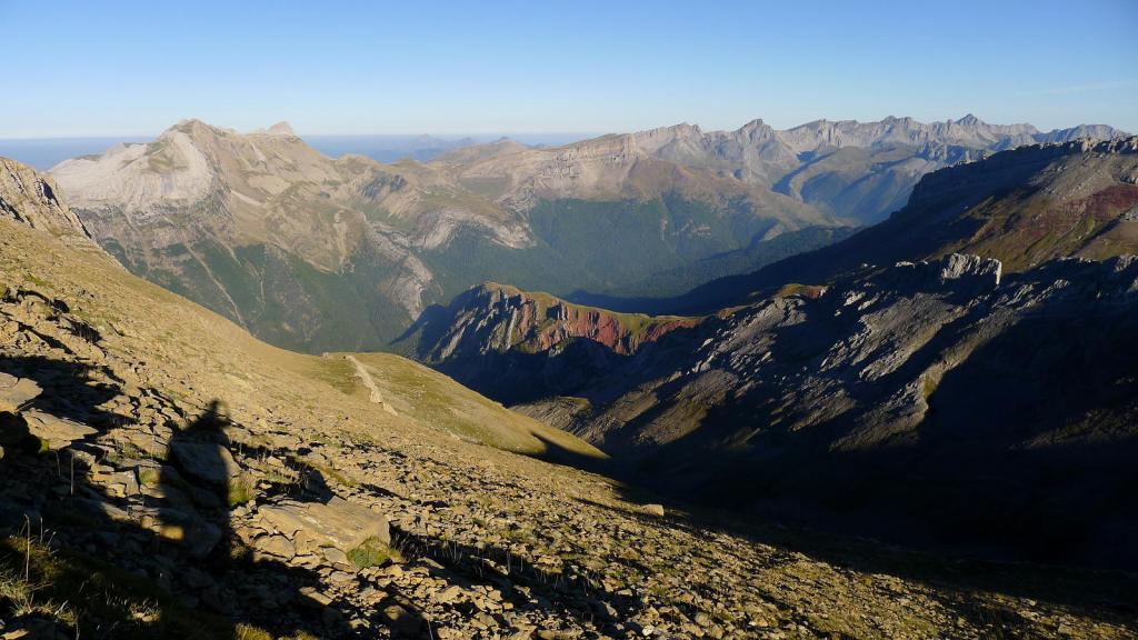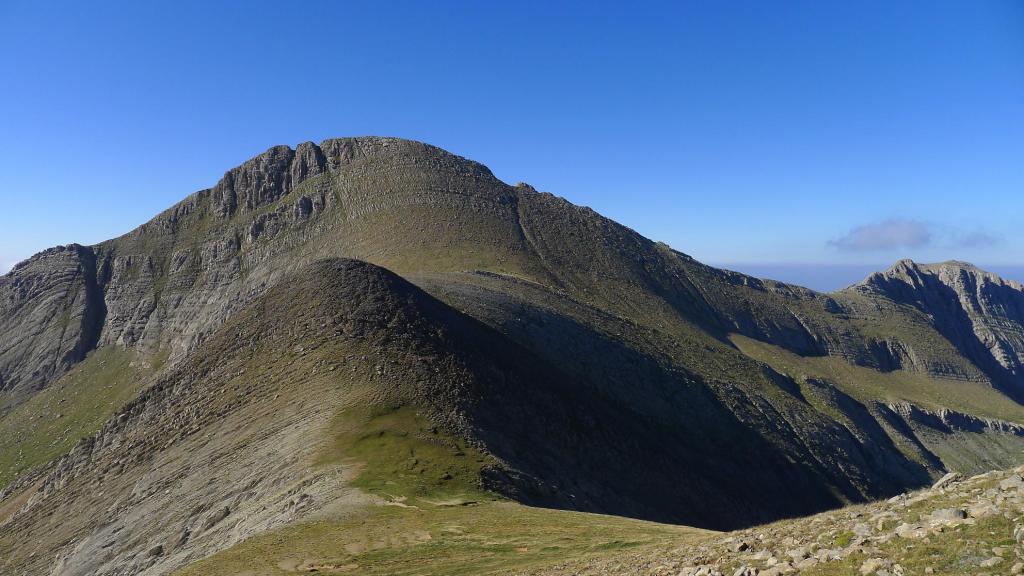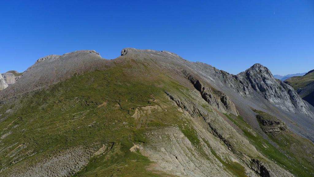 Antes de llegar al collado ya me voy encaminando a la derecha (S) por las empinadas laderas de Punta Agüerri, buscando las zonas más cómodas, que en ningún caso requieren de trepadas. Salgo a la cresta y la cima queda un poco a mi izquerda (Punta Agüerri 2447m 2h32′).