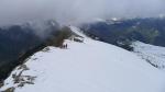 A partir de ahora tendremos nieve profunda. Ascendemos primero (S) el pico SE de les Pales del Port o Estarilló (2253m 2h55′), cuya punta es un estupendo mirador del valle de Boí. Siguiendo la loma (S) llegamos al punto más alto, el Pic o Cap de Gelada (2445m 3h56′). Metidos en la niebla seguimos por la cresta WNW, descendiendo al Portell de Gelada (2275m 4h21′), con una vertical caída a la izquierda pero con suaves laderas a la derecha, y subiendo el Cap de la Creu (2319m 4h35′).