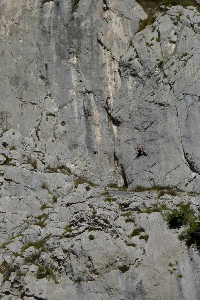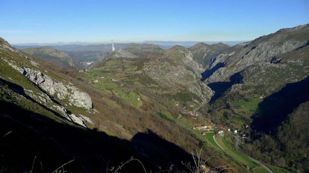 Llegamos al pueblo de Los LLanos pasando una portilla (615m 3h23′), recorremos el pueblo por carretera asfaltada y, antes de dar la 2ª gran curva, salimos de la carretera para seguir una pista que pasa bajo las verticales paredes de Otura, donde vemos grupos de escaladores. Este camino, en media ladera hacia el E, nos lleva a una antena de TV (538m 4h08′). Estamos sobre la estrecha foz por donde pasa la carretera y el río Riosa. Cambiamos de dirección hacia el N para descender hacia Las Mazas, que ya está prácticamente pegado a La Collada. Atravesamos sus calles para desembocar en la carretera y después en el aparcamiento (4h32′).
