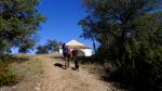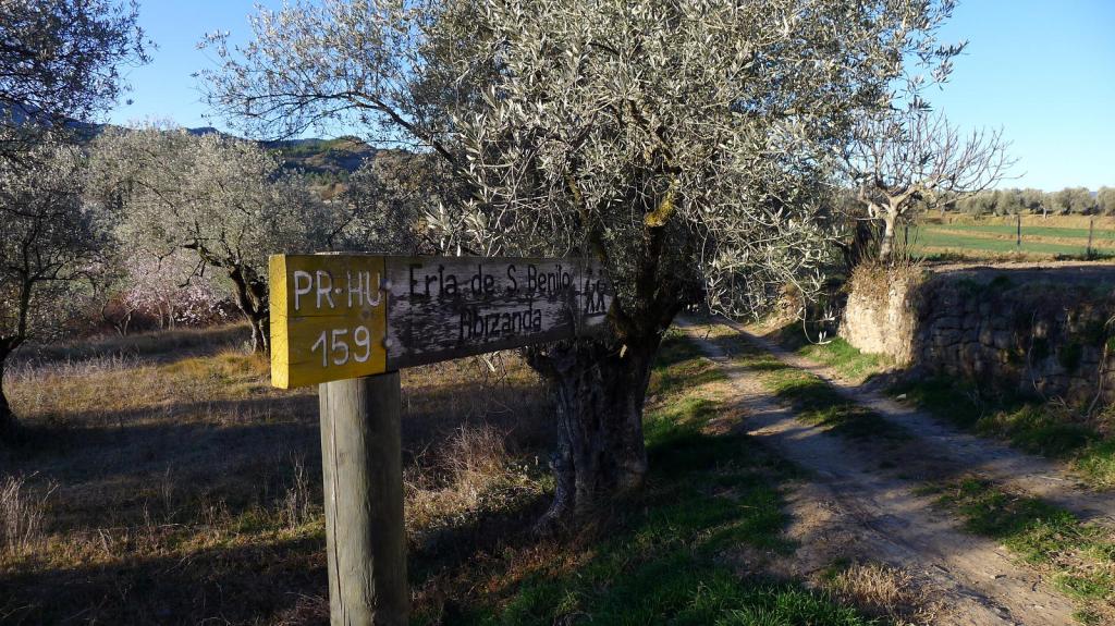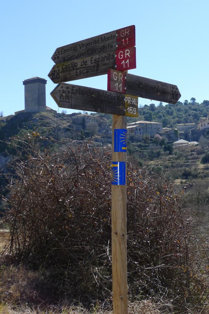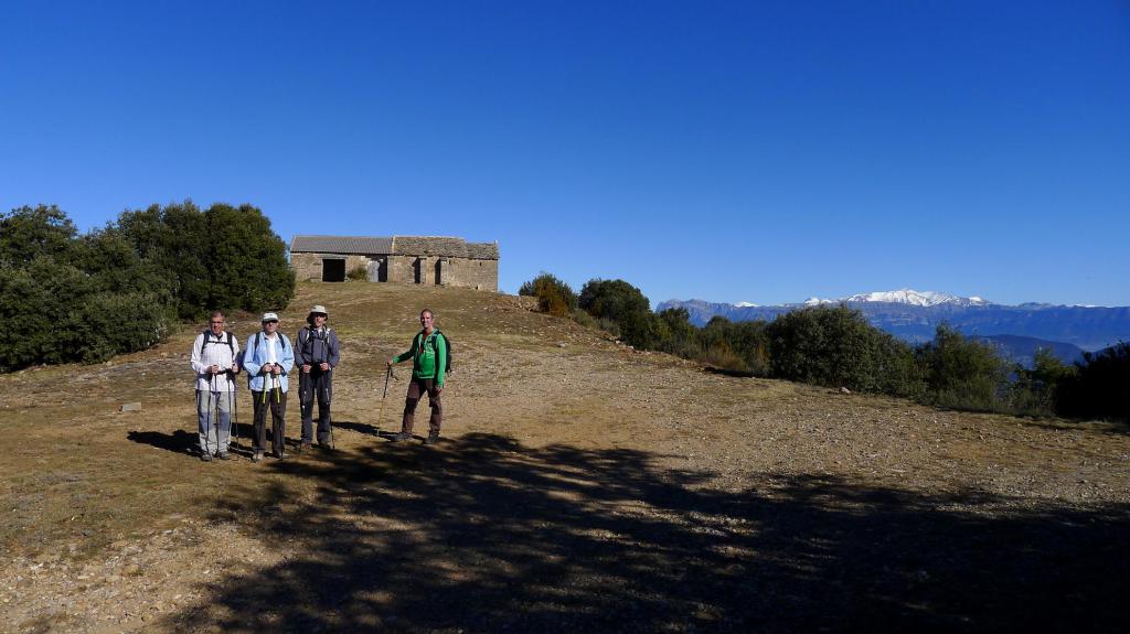 Salida de Olsón (683m) siguiendo el PR-159 hacia la ermita de San Benito. Subida por bosque de pinos en dirección S, hasta el collado (1037m 1h26′) entre la ermita de San Benito y Peñarroya (punto más alto de la sierra de Arbe). Se toma la pista a la izquierda (E) y se sube a la ermita de San Benito (1074m 1h43′), donde almorzamos.