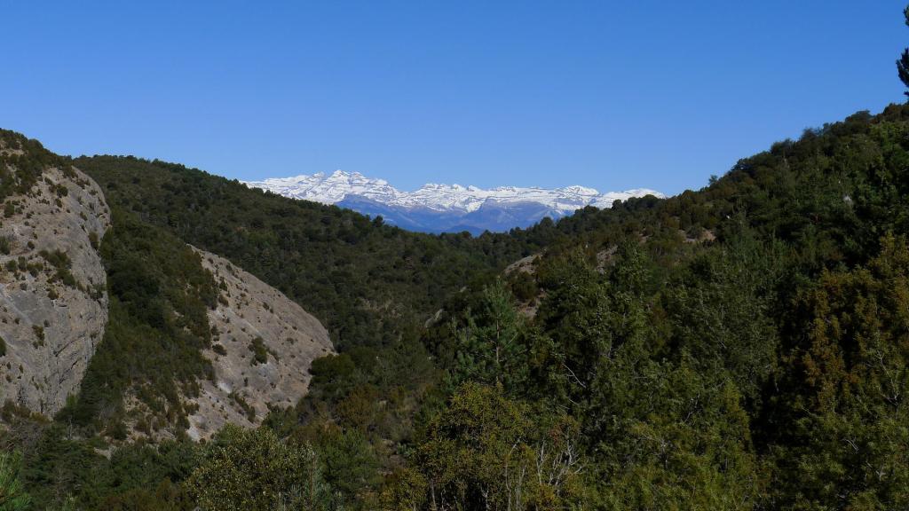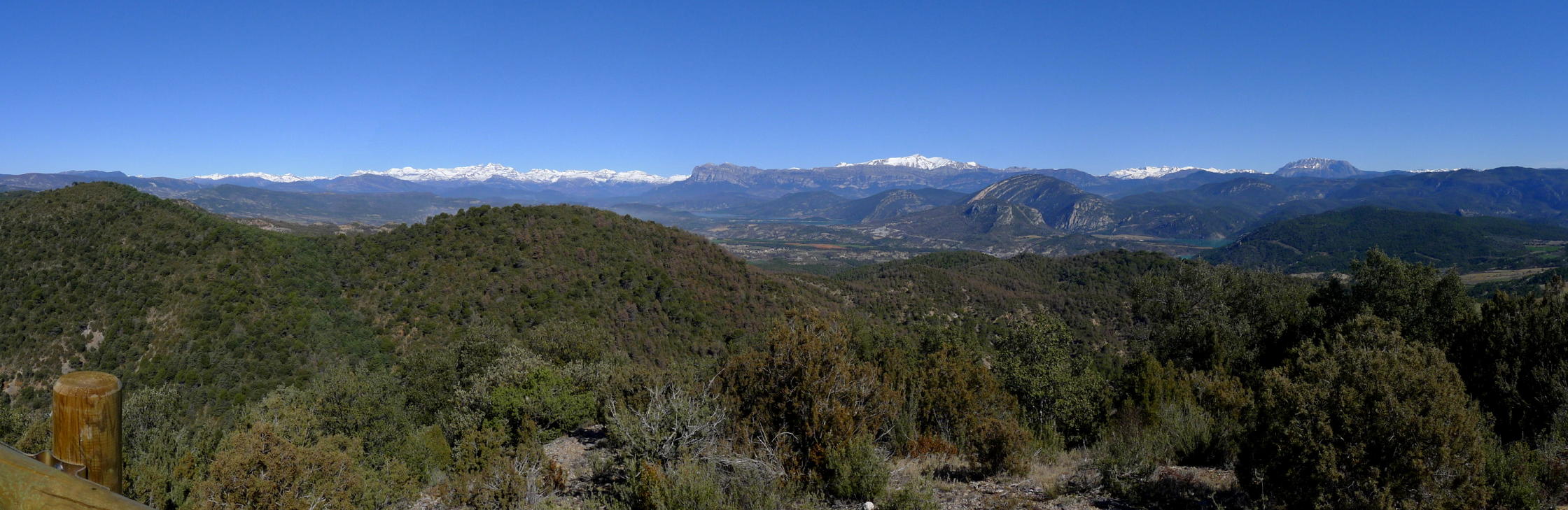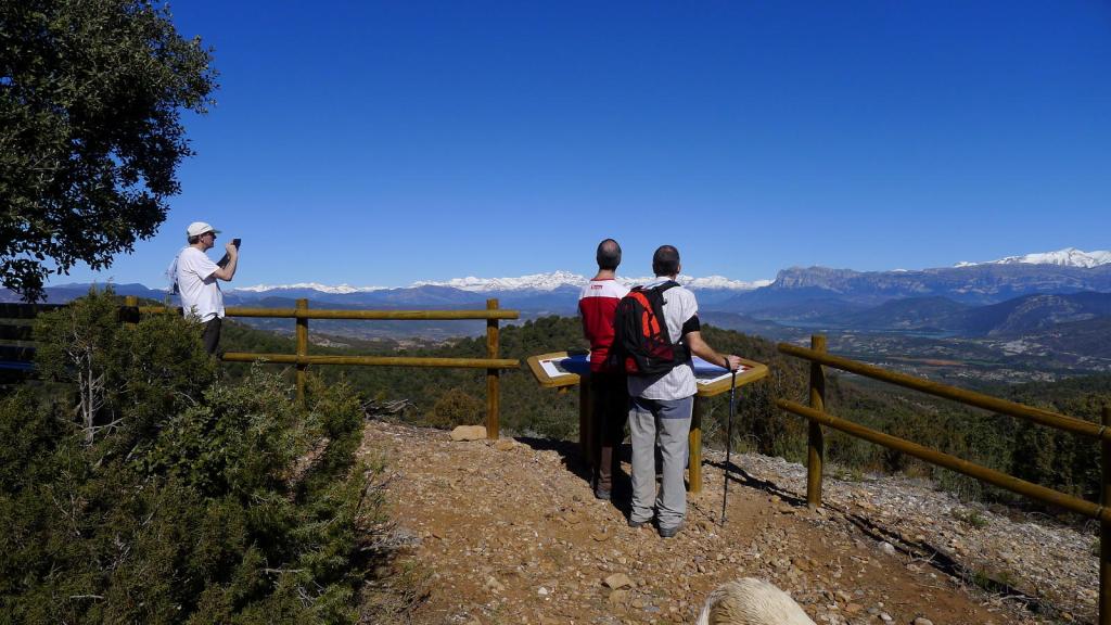 Caminata moderada y sin dificultades, que nos permite disfrutar de dos interesantes pueblos, Olsón, con su importante iglesia de mediados del XVI, y Abizanda, precioso y bien conservado pueblo donde destaca la torre lombarda del siglo XI; pero sobre todo hay que disfrutar de las vistas del Pirineo oscense, ya que se abarca desde Sabocos, en Panticosa, hasta la Pica Cerví, en Boí (Lérida), pasando por los macizos de Vignemale y Monte Perdido, Cotiella y Aneto-Maladetas. Además tenemos la compañía de dos simpáticos perros de Olsón.