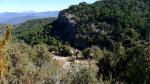 La cara sur de la sierra tiene una vegetación de carrasca. Vuelta a la pista y comienzo del descenso por pista hasta la desviación del Mesón de la Sierra (935m 2h33′). ¡Ojo porque el cartel ha sido arrancado y es fácil pasárselo y seguir por la pista! Senda en dirección E que va descendiendo hasta cruzar el barranco de San Victorián (814m) y asciende hasta juntarse de nuevo con la pista a unos metros de la ermita de San Victorián (878m 3h14′), donde sube la romería desde Abizanda para hacer la famosa predicción de los langostos. Merece la pena asomarse al mirador, con tabla de orientación.