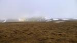 Aquí se toma la pista de la derecha, hacia Cuello Gordo y Góriz, y un poco después se deja dicha dirección a la izquierda siguiendo la pista de la derecha hacia el refugio, caminando por amplias zonas llanas entre la niebla. El refugio de Cuello Arenas está cerrado. Detrás de él, otro cartel me indica la dirección de la faja de la Pardina y mallata Candón, avanzando a media ladera hasta la plana Esmoladera (1923m 1h44′) que constituye la cabecera del barranco de la Pardina. Hay que rodear dicha cabecera en un amplio giro a la derecha y descender siguiendo el cartel de «mallata Candón por faja Pardina». En esta zona ya las vistas del barranco empiezan a ser espectaculares.