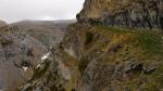 Ahora no hay posibilidad de pérdida, solamente se puede seguir el camino que circula junto a la pared de la faja, disfrutando de las vistas siempre que no suframos vértigo. Cuando ya se va alcanzando el cañón de Añisclo encontramos el cartel de «llano Tripals por mallata Candón» (1700m 2h36′) y se asciende por una vía equipada con cadenas, sirgas y grapas (es fácil) que da acceso a los pastos superiores de la mallata Candón (cabaña de pastores). Una sendita entre el pasto al principio y luego justo por encima de la faja Pardina, vuelve a la plana Esmoladera (1923m 3h24′), donde hago una parada para comer.