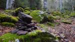 Va poco a poco girando al SE y cruza el barranco de la Espata (1435m 0h50′), un poco problemático porque lleva mucha agua y está lleno de ramajes arrastrados por aludes. A partir de aquí la senda zigzaguea por el bosque hasta salir a lomas despejadas poco antes de llegar al refugio forestal (1735m).