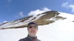Subo a mi izquierda al collado de lo Barcal (2055m 2h32′), entre el Castillo de Acher y el Netera, donde encuentro una muga de separación, y sigo el suave lomo que se dirige al Netera, visualizando la línea de ascensión por las pendientes de hierba libres de nieve.