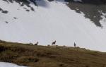 En el descenso aprovecho todos los neveros que me resultan más cómodos. Grupos de sarrios corren por los neveros y las pedreras bajo Costatiza. Paso por el refugio forestal (1735m 5h08′) y bajo sin problemas hasta el puente de Oza (6h00′)