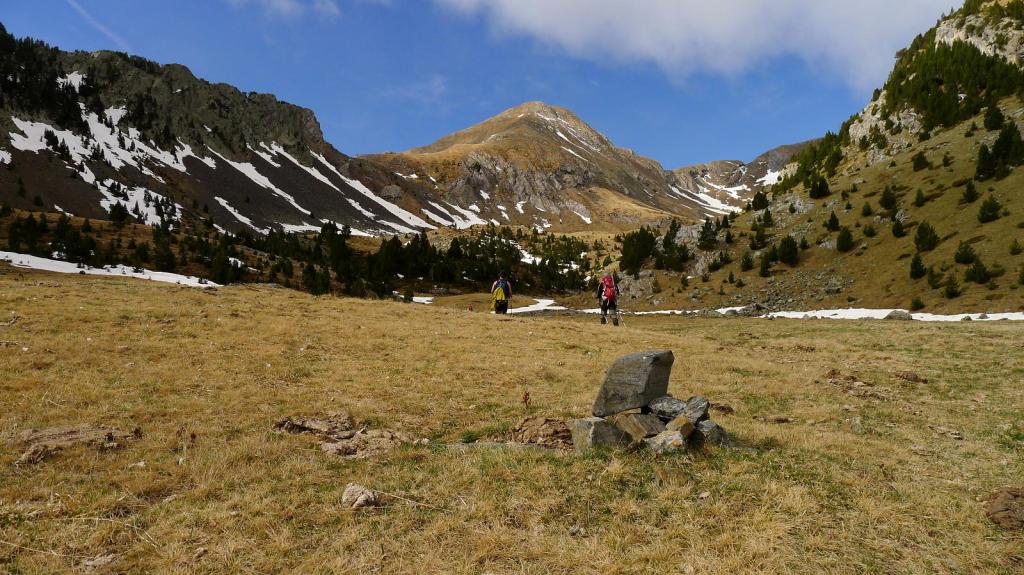 Alcanzamos el llano de la parte baja del valle (2042m 1h58′) y seguimos por la vaguada del barranco. Ya vemos de frente el pic de l’Äut y, algo más cerca, un poco a la izquierda, el collado al que tenemos que acceder.