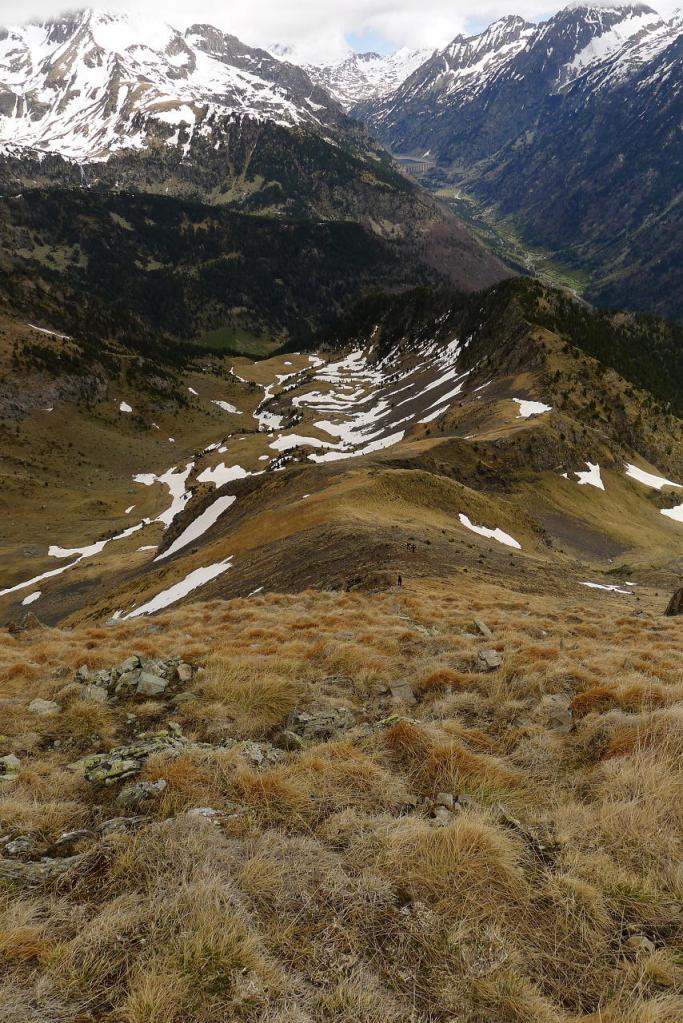 Girando a la izquierda (SSE) tomamos la canal, todavía nevada, que asciende directa al collado del Amurriador (2275m 2h39′), justo al S de Roques Blanques. Ya sólo hay que seguir el lomo herboso-pedregoso (SW), que al final se convierte en una ladera de pendiente muy fuerte, pero sin problemas técnicos, hasta la cima del Äut o tossal de la Sentella (2532m 3h04′).
