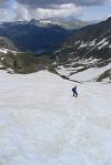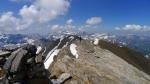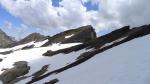 Seguimos la cresta hacia el NE. Pasamos la nombrada placa lisa, que en seco no presenta mayores problemas salvo asegurar un poco el paso. Hacia 3040m nos desviamos a la izquierda, dejando la cresta para faldear por la ladera N. Perdemos altura y atravesamos algunos neveros, hasta llegar a la imponente brecha que hay bajo el Estaragne (2922m 5h07′). Una traza de paso bien marcada zigzaguea hasta la cumbre del Estaragne (3006m 5h23′). Desde la cumbre se domina todo el valle de Estaragne hasta el lago de Oredon.