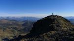 Se ve una pala de hierba que parece ir a un colladito, pero vuelvo a ir a la izquierda, de nuevo hacia la pared rocosa para entrar en la canal más estrecha, hay hitos útiles. Se convierte en una chimenea(2430m 2h12′), pequeñas trepadas fáciles, y se atraviesa una brecha (2455m 2h15′) para pasar a la cara norte. Hay que descender 5 m. y se toma a la izquierda una vira diagonal en la roca que da acceso a la cresta N para recorrer los últimos metros hasta la cima. Curavacas (2524m 2h25′). Magnífica vista del precioso valle del río Carrión, los Picos de Europa y las lagunitas en los circos que se forman en la cara N.