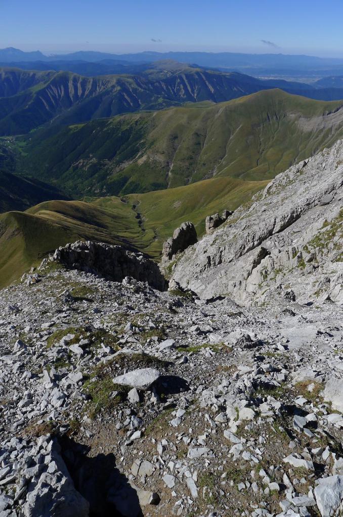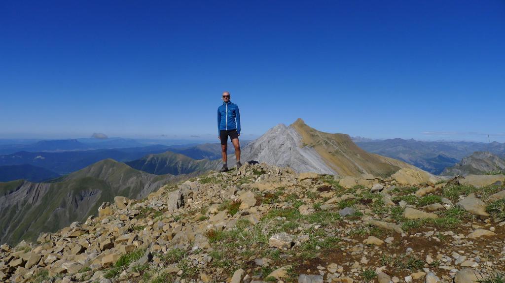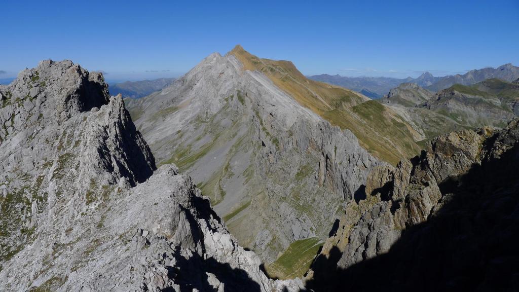 Por la ladera, algo a la derecha de la cresta se sube con fuerte pendiente hasta la cresta y enseguida a la cima (Otal 2705m 3h47′).