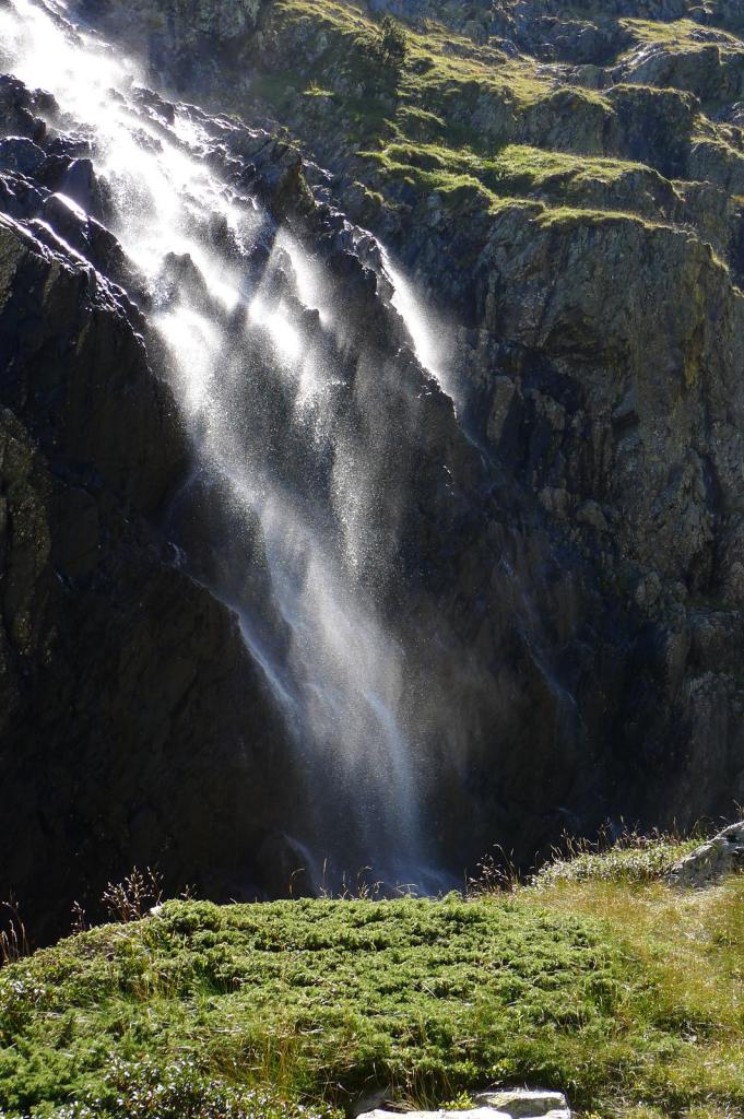 Descendemos hasta el collado y desde ahí directamente al valle del río Nère. Intentando acortar bajamos demasiado directos este valle y tenemos que ascender un poco porque desembocamos en la parte superior de las cascadas, así que más nos habría valido bajar por el mismo camino que la subida. Aparcamiento (5h30′)
