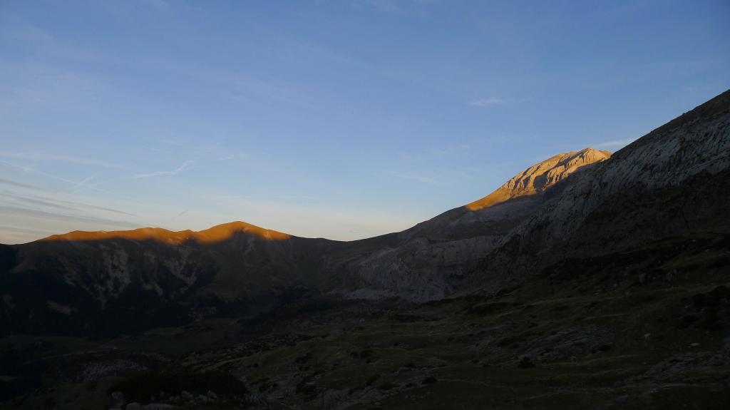 Ya había intentado estas cumbres en otra ocasión, pero el mal tiempo me echó atrás. Hoy vuelvo a intentarlo como una excursión mañanera, bastante rápida. Al final el Olibón esconde una arista muy pendiente y muy aérea en la que no hay que descuidarse, pero que da más aliciente a la ascensión.
