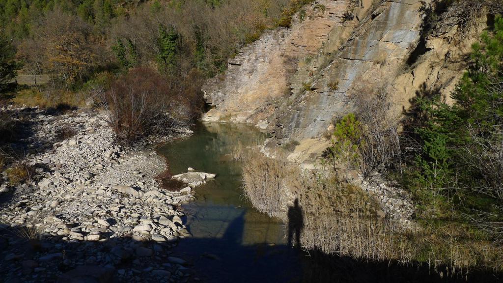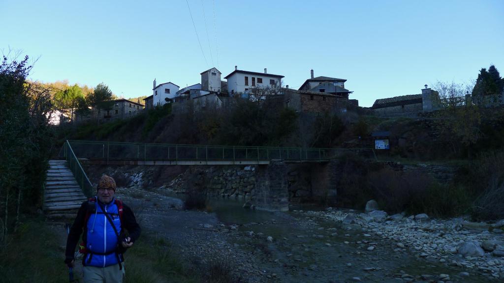 Se pasa junto al abandonado campamento de Juanes (758m 4h28′) y descendemos hasta la orilla del río Asabón que nuevamente cruzamos por un puente (650m 4h56′) para llegar enseguida a Villalangua (638m 5h15′).