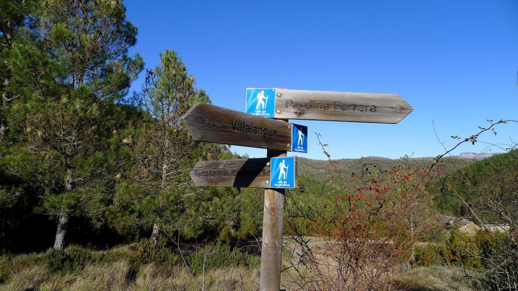 Desde el aparcamiento junto a la posada de Villalangua (638m) se desciende para cruzar el río Asabón por un puente 620m 0h03′) y acceder a una pista (SW). Seguimos hasta una desviación (carteles) dejando la pista y tomando una senda (670m 0h13′) que asciende junto al barranco Salau (S) hacia la imponente brecha entre dos rocas que nos introduce en la foz de Salinas.