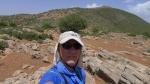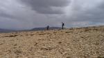 No hay ningún camino, hace un calor tremendo y todo son ásperos pedregales que terminan por romperme las zapatillas. Un paisano cogiendo almendras nos mira con cara de incredulidad. Pasamos sobre una meseta (1360m 0h30′), un amplio collado (1255m 052′) y alcanzamos el lomo del Jebel Keroual (1480m 1h37′). La cosa se alarga más de lo previsto.