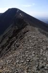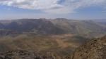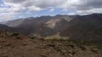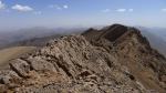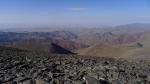 Se faldea una punta que queda a la derecha para acceder a la cresta (3955m 2h48′). La cresta es larguísima, unos 4.5 km, con algunas subidas y bajadas hasta encarar la pala final que termina en la cima del M’goun. Los circos y valles que quedan a nuestra izquierda (norte) son un auténtico paisaje lunar. A nuestra derecha (sur) se extiende una sucesión sin fin de líneas de áridas montañas hacia el desierto.