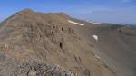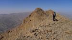 Subimos directamente una ladera con bastante pendiente para llegar a una loma (3070m 0h38′), donde se desciende un poco hasta una especie de hondonada, y se toma desde allí el lomo que lleva a la punta oeste de la cresta del Azourki. Pasamos por unas piedras a modo de vivac (3370m 1h20′) y llegamos hasta el collado oeste (3540m 1h45′); desde allí seguimos toda la cresta a nuestra izquierda. La ladera sur, la del valle de Agouti, es muy escarpada. En la cresta hay un par de pasos donde hay que poner las manos, el resto andando hasta la cumbre (Azourki 3675m 2h22′)).