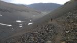 La ladera se hace larga y pesada, pero por fin llegamos a su lomo, a la izquierda de un suave y extenso puerto (3380m 2h57′) . Desde este puerto vemos que baja una senda hacia la hondonada de las brañas. En el lomo localizamos nuestro próximo objetivo, un collado bajo la cresta que asciende a la punta izquierda (oriental) del Wawgoulzat. Llegamos tras otro largo flanqueo. (Collado sur 3470m 3h20′).