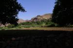 Ya estamos en el valle de Ait-Bou-Goumez, nuestro centro de operaciones. Los pueblecitos se suceden a lo largo del valle, junto a una cinta de verdor de huertos, frutales y otros cultivos gracias al río. A los lados, en cambio, destacan las laderas de las resecas montañas. Una carretera, asfaltada al principio, luego una pista, recorre los camuflados pueblos de adobe.