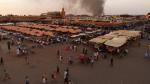 Encaramos la reseca llanura hacia Marrakech. Por las ventanillas abiertas entra un aire que abrasa. Nos alojamos de nuevo en el Mogador Menzah, que le gustó a Martín y, después de ducharnos, nos vamos a dar una vuelta por la medina y cenamos en una terraza de la plaza Jema El Fna, mientras va anocheciendo y animándose de turistas y de toda la parafernalia que se monta a su alrededor.
